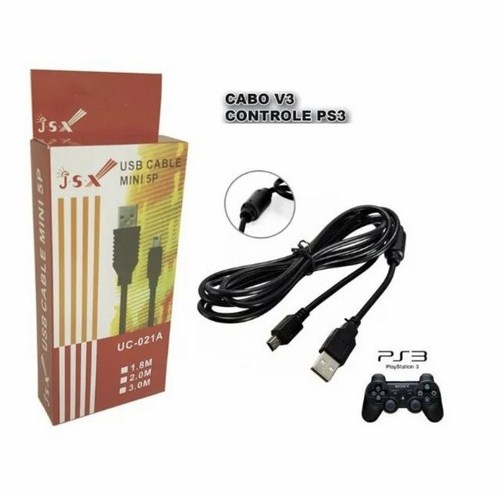 Com este cabo é possível recarregar controle do Playstation 3, caixinhas de som, e diversos aparelhos que utilizam a entrada mini usb.